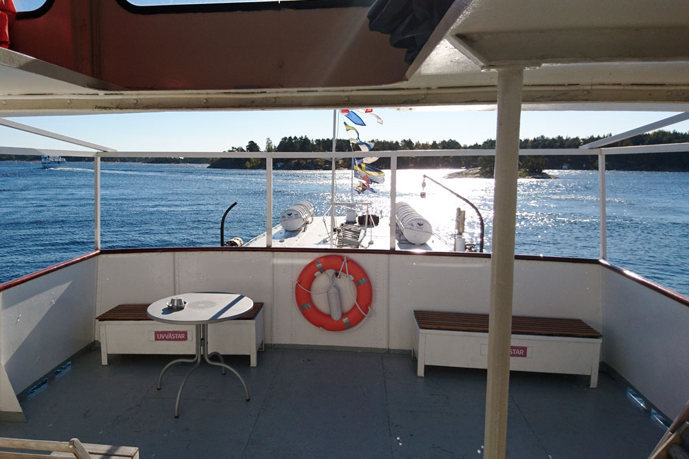 M/S Rödlöga lägger till var som helst bland sälgrynnor och havstulpaner bara det finns lite vatten intill. I byssan har vi en kock som bjuder på matfyrverkeri. Rederiets klassiska ångbåtsbiff finns alltid på menyn. Liksom grillparty på kobbe i solnedgången. Och brudens bubblande skål med laxrosetter och kulinariska knopar.